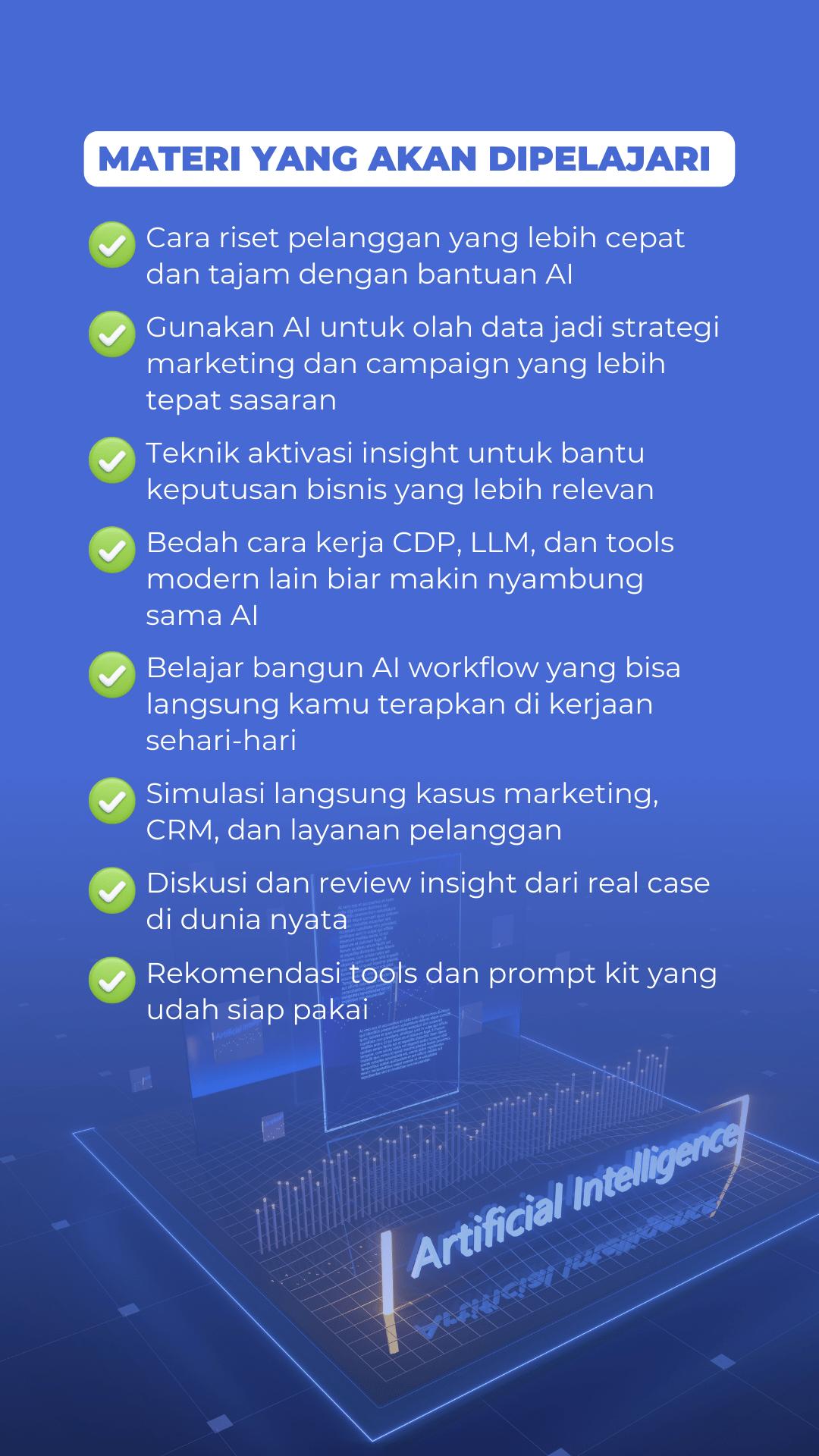 Kupas Tuntas Cara Pakai AI Buat Baca Pelanggan & Ambil Keputusan Lebih Cerdas. Jadwal: 1st Round 18 - 19 Nov & 2nd Round 25 - 26 Nov